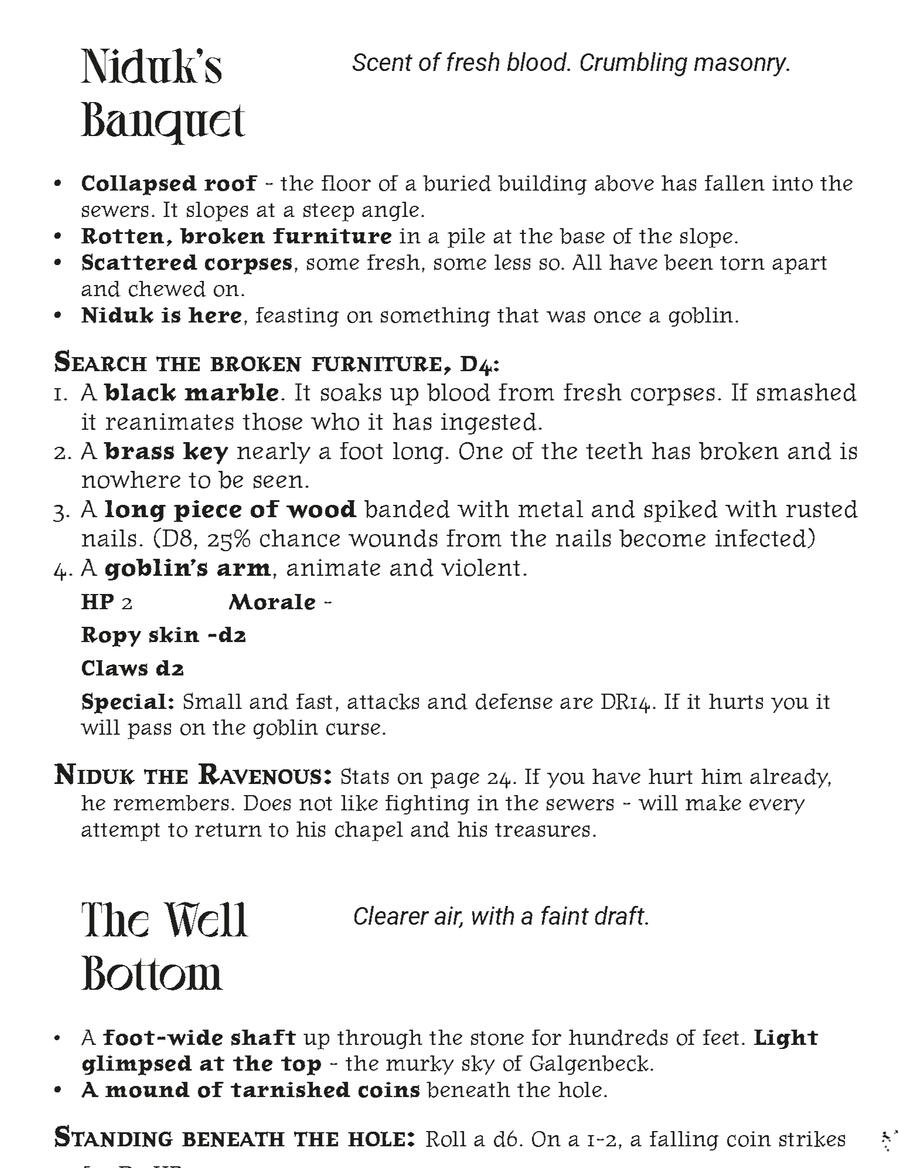 Niduk the Ravenous: If you have hurt him already, he remembers. Does not like fighting in the sewers - will make every attempt to return to his chapel and his treasures.
